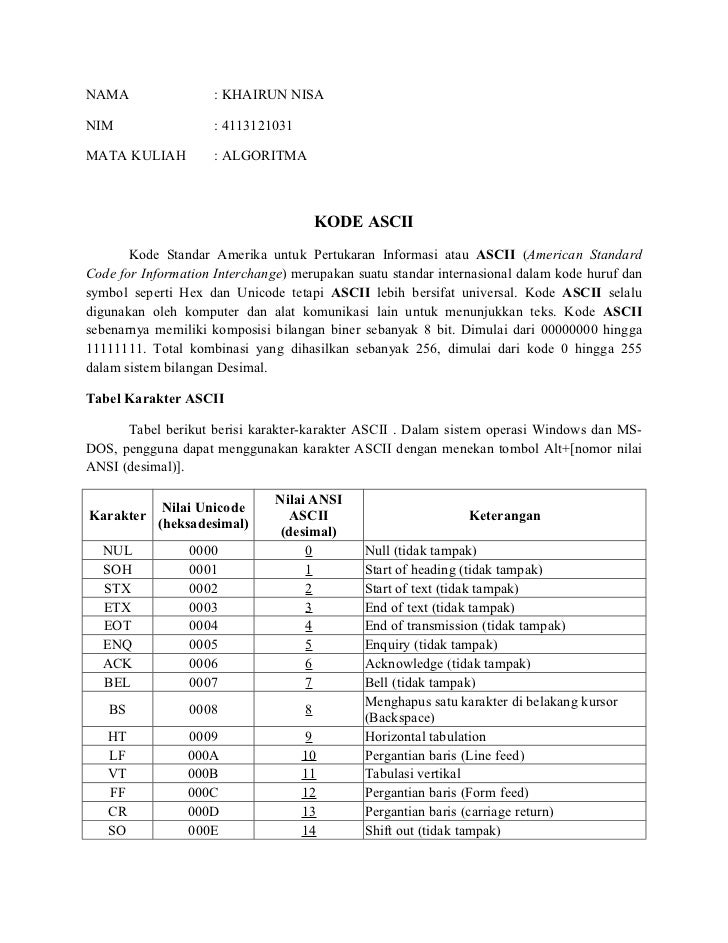 Kode Ascii Docx Kode Ascii Ascii American Standard Code