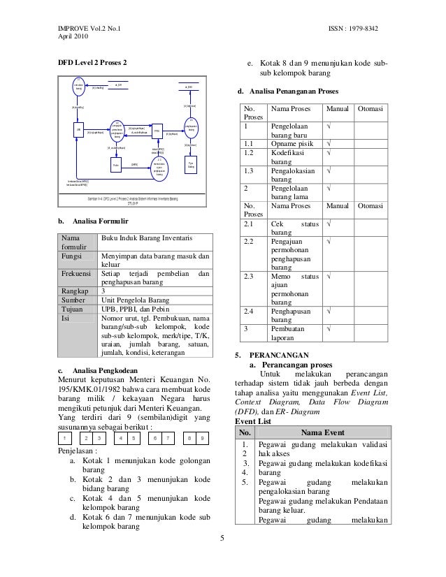 Pada proses pem akaian barang inventaris ini akan dicatat kode pemakaian kode barang jumlah dan tanggal pemakaian serta mencatat kondisi barang dengan kondisi barang habis atau sisa.