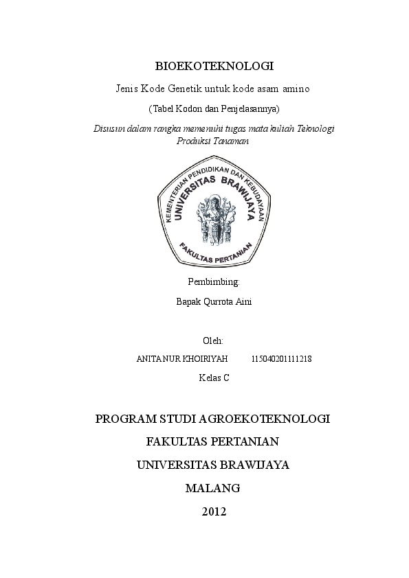 Doc Bioekoteknologi Jenis Kode Genetik Untuk Kode Asam